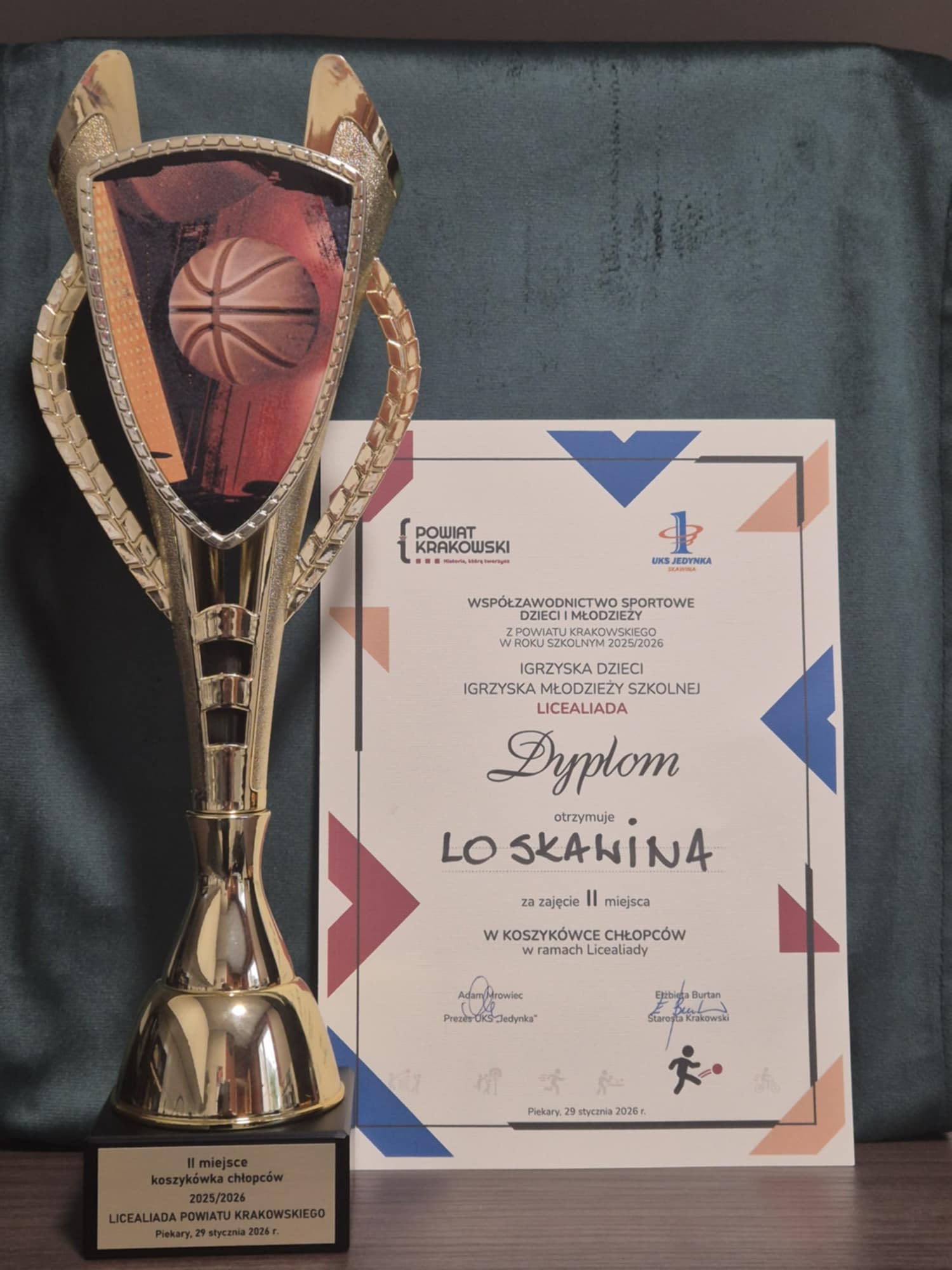 W czwartek 29 stycznia 2026r. w hali sportowej w Piekarach odbyły się „Mistrzostwa Powiatu Krakowskiego w Koszykówce Mężczyzn”. Do rywalizacji turniejowej przystąpiło 6 drużyn. Po wyczerpującym turnieju reprezentacja męska LO Skawina zajęła 2 miejsce. Rywalizacja przebiegała na bardzo wysokim poziomie sportowym. Cieszymy się bardzo i czekamy na dalsze sukcesy.