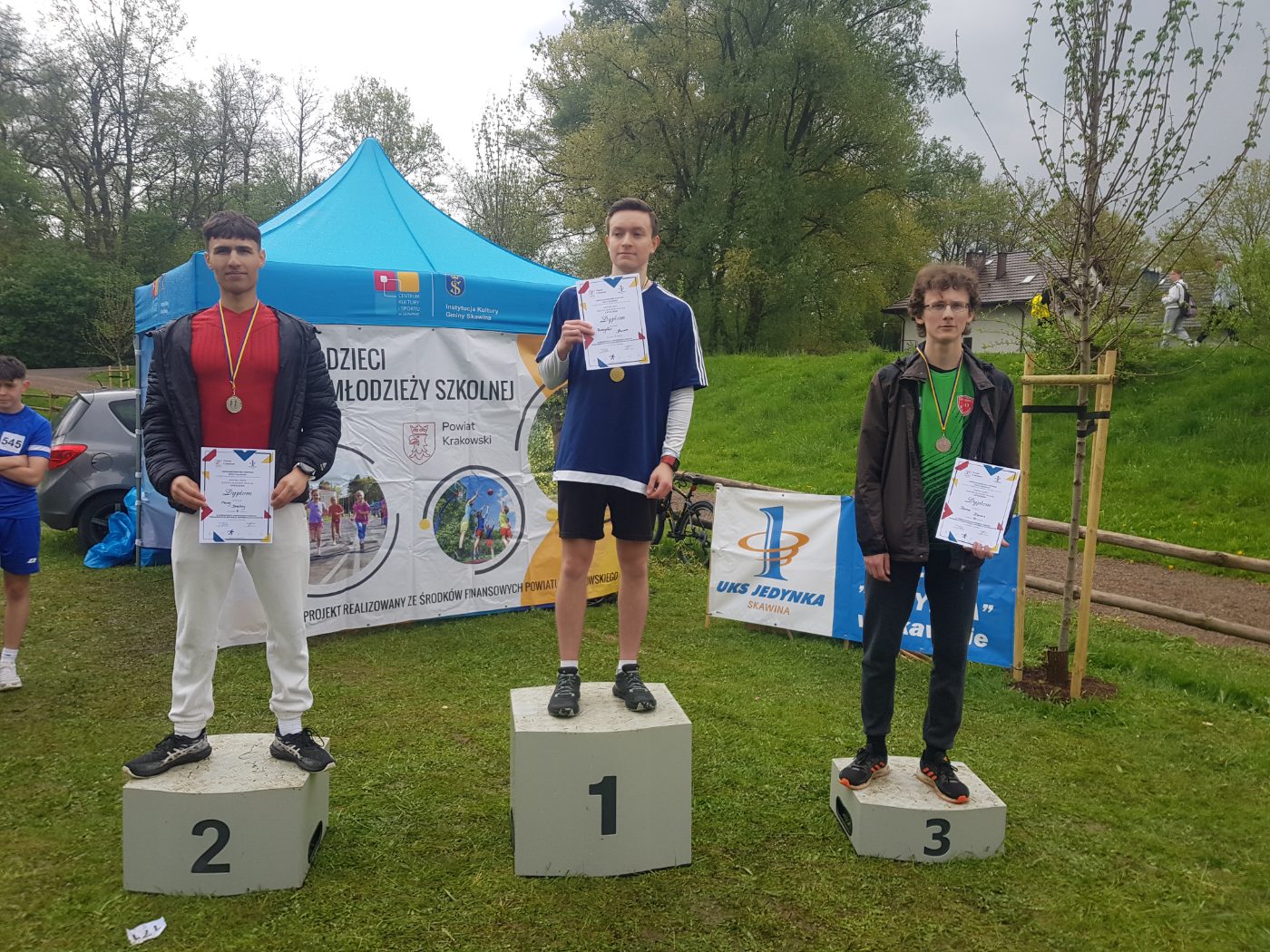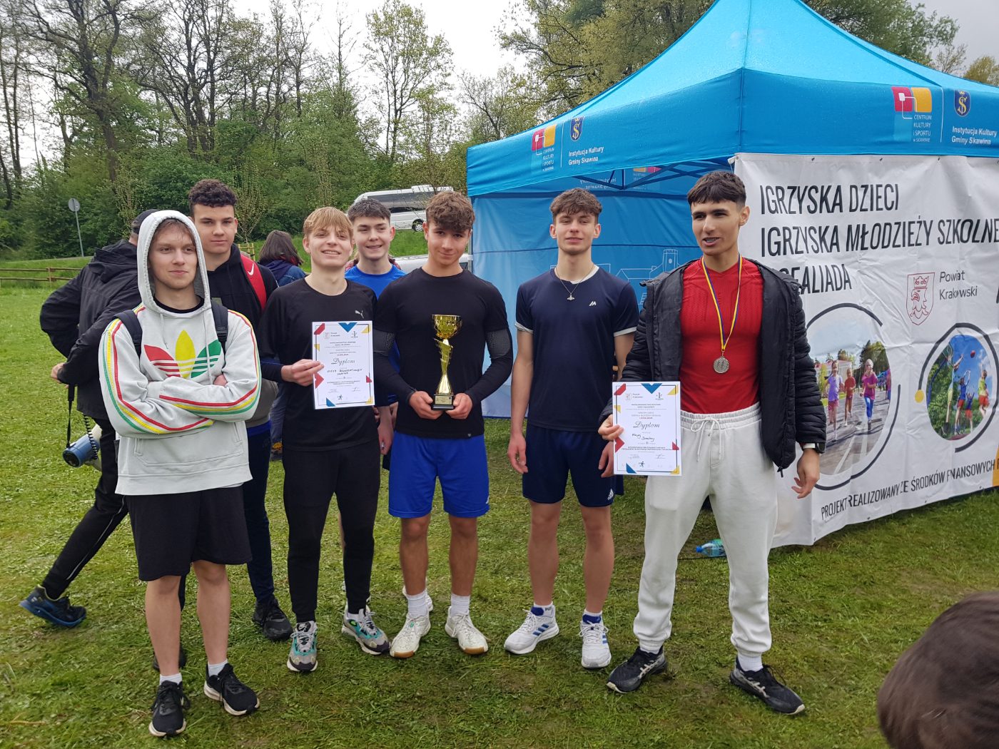 W dniu 18 kwietnia na Starorzeczu Skawinki odbyły się ,,Mistrzostwa Powiatu Krakowskiego w Drużynowych Biegach Przełajowych”. Zawodnicy startowali w chłodzie i deszczu. Chłopcy mieli do pokonania dystans 1600 m, a dziewczęta 1200 m. Na starcie zgłosiło się 6 drużyn męskich oraz 5 żeńskich. W wyniku zaciętej rywalizacji drużynowo nasi chłopcy zajęli 2 miejsce, a dziewczęta 4 miejsce. Dodatkowo w klasyfikacji indywidualnej w swoich kategoriach zarówno Maciej Drechny oraz Joanna Kisielewska stanęli na 2 stopniu podium. Składy drużyn –chłopcy: Maciej Drechny, Szymon Poskróbek, Mateusz Doroz, Seweryn Maślanka, Adrian Pałka, Mateusz Pietraszek, Tomasz Tyrka, Patryk Szewczyk – dziewczęta: Maria Nitecka, Julia Brózda, Joanna Kisielewska, Emilia Dąbrowska, Karina Kumala, Urszula Popowicz , Daria Grondalczyk. Gratulujemy naszym drużynom i czekamy na dalsze sukcesy.