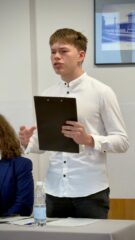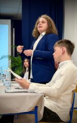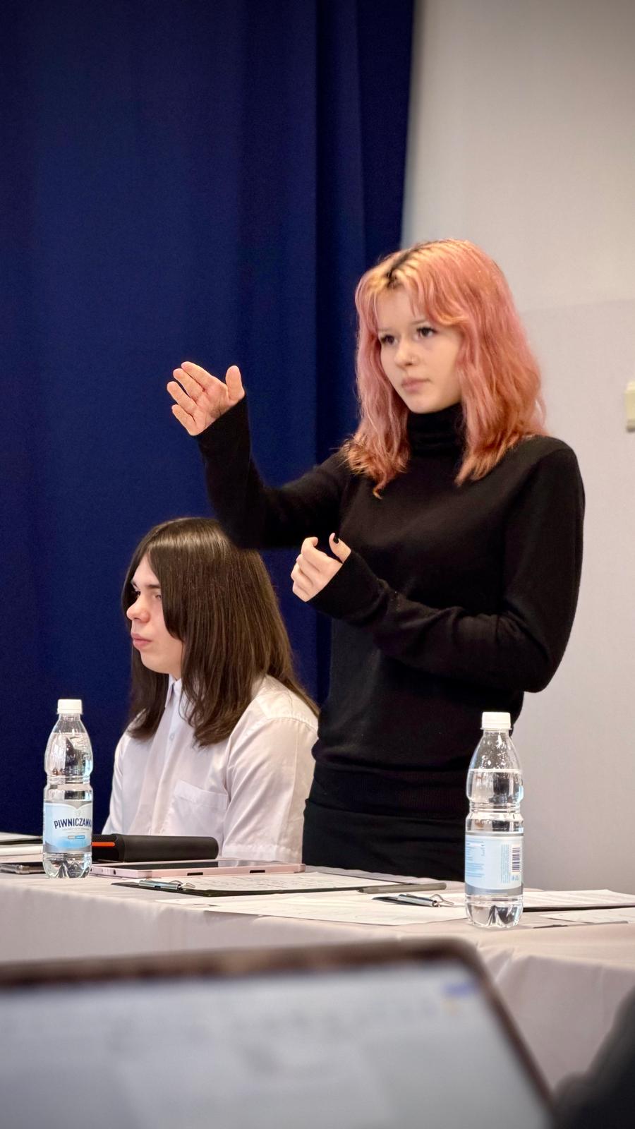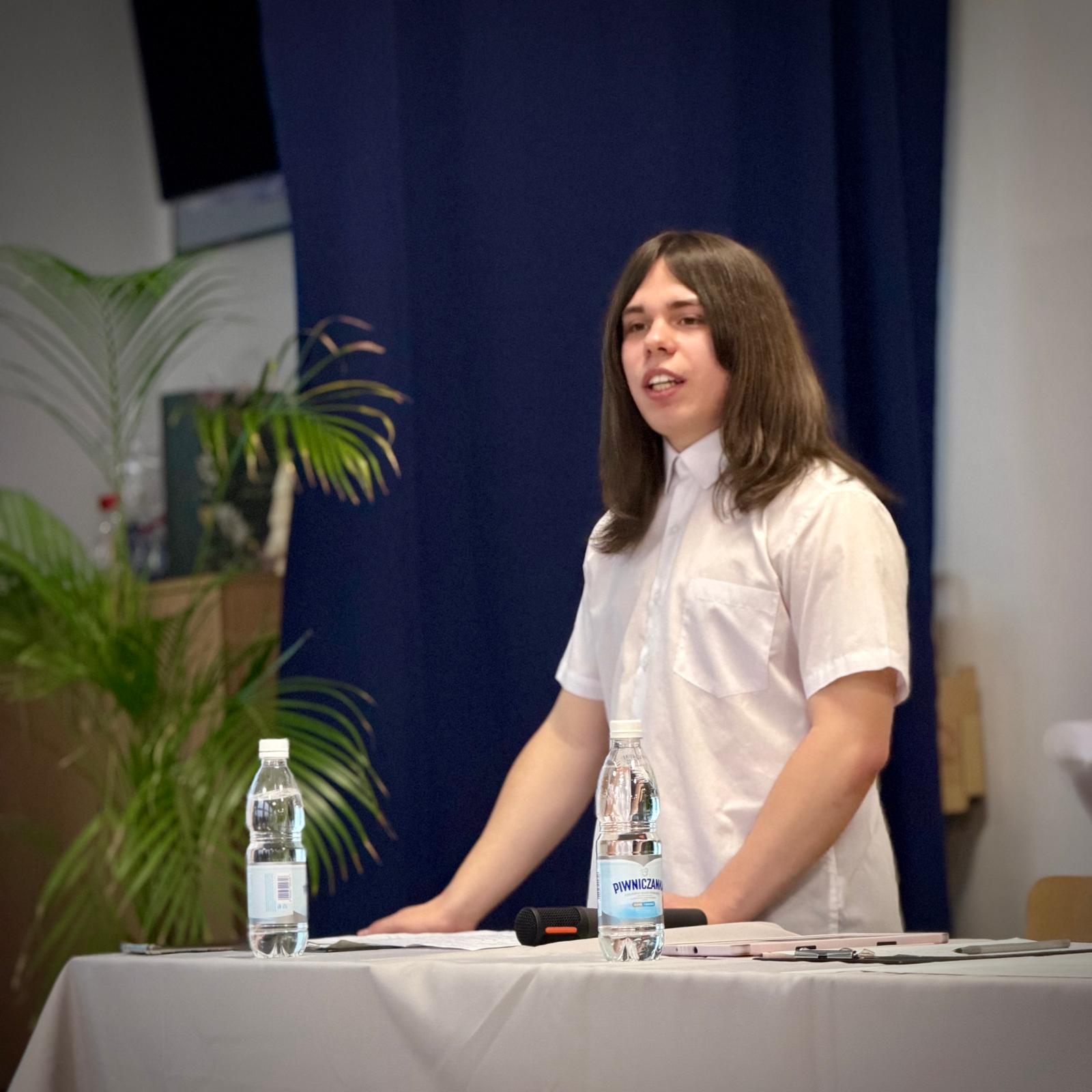 Z kolei drużyna LO wystąpiła w składzie: 1. mówca – Bartłomiej Kotula, 2. Julia Wróbel, 3. Kacper Szymula, 4. – Jakub Krzypkowski.