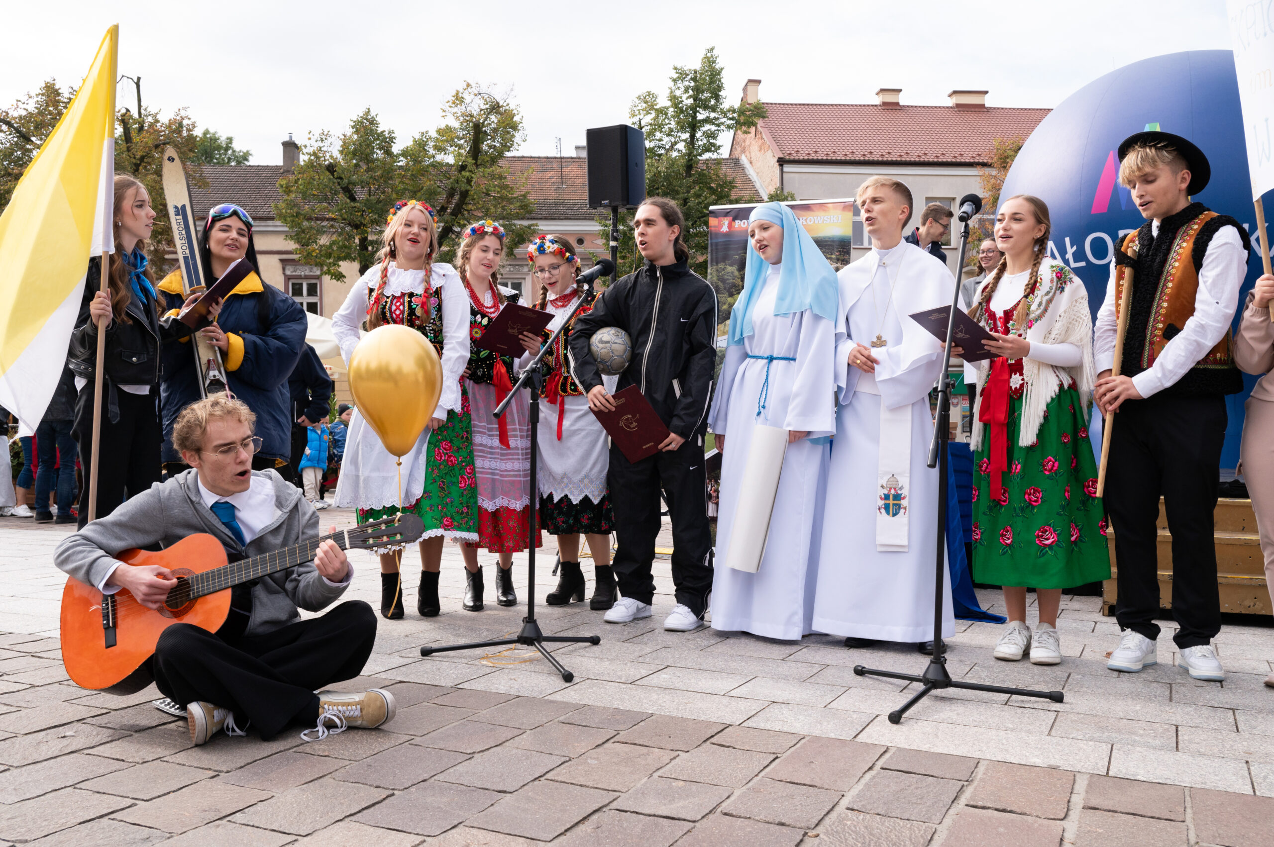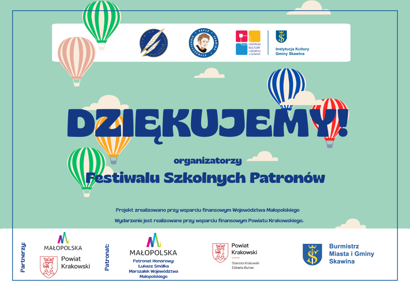 W piątkowe, nieco chłodne, ale słoneczne przedpołudnie uwagę mieszkańców Skawiny przyciągnął wielobarwny korowód niezwykłych postaci maszerujących w rytm skocznych piosenek wygrywanych przez Orkiestrę „Sygnał” z Radziszowa. A wśród postaci znaleźli się i wielcy naukowcy i badacze kultury, i postacie z bajek, literaci, działacze społeczni, a nawet …dwóch papieży! Skąd taka ich różnorodność? To patroni szkół, które wzięły udział w Festiwalu Szkolnych Patronów, wydarzeniu organizowanemu przez Stowarzyszenie Absolwentów i Przyjaciół Liceum Ogólnokształcącego oraz Liceum Ogólnokształcące we współpracy z Centrum Kultury i Sportu w Skawinie.