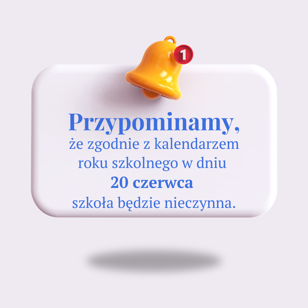 Informacja 17 czerwca, 202517 czerwca, 2025 Przypominamy, że zgodnie z kalendarzem roku szkolnego w dniu 20 czerwca szkoła będzie nieczynna.