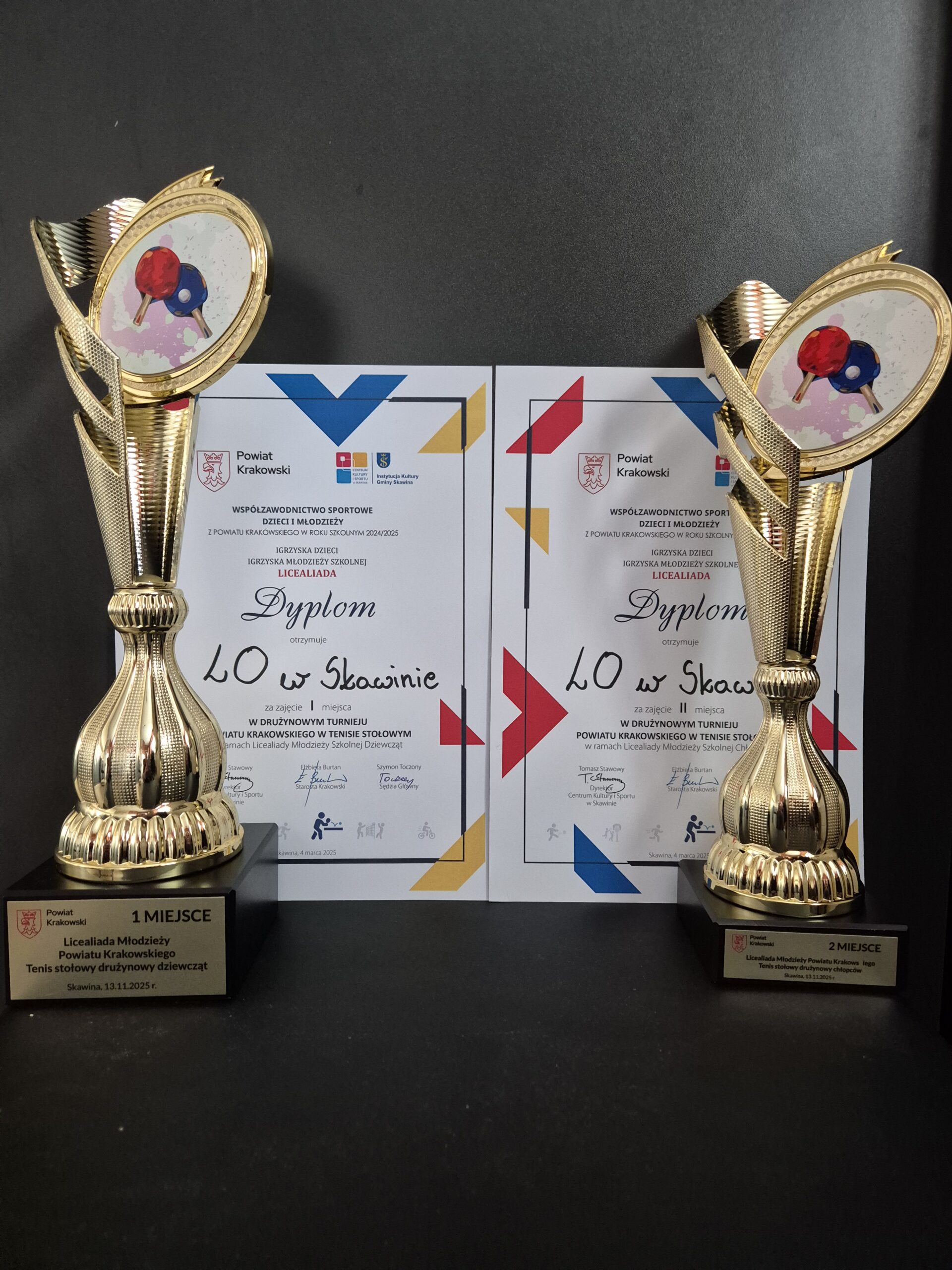 W dniu 13 listopada 2025 w Hali Widowiskowo-Sportowej CKiS w Skawinie rozegrano drużynowy turniej tenisa stołowego w kategorii Licealiady Młodzieży Powiatu Krakowskiego w ramach rywalizacji Szkolnego Związku Sportowego. Turnieje były zorganizowane przez Centrum Kultury i Sportu w Skawinie. W zawodach uczestniczyło pięć żeńskich i sześć męskich zespołów. Grano systemem do trzech wygranych partii w poszczególnych meczach. Szkoły reprezentowały gminy powiatu krakowskiego: Krzeszowice, Liszki, Skawina, Wielka Wieś. Trzy najlepsze szkoły w każdej kategorii otrzymały dyplomy oraz puchary.