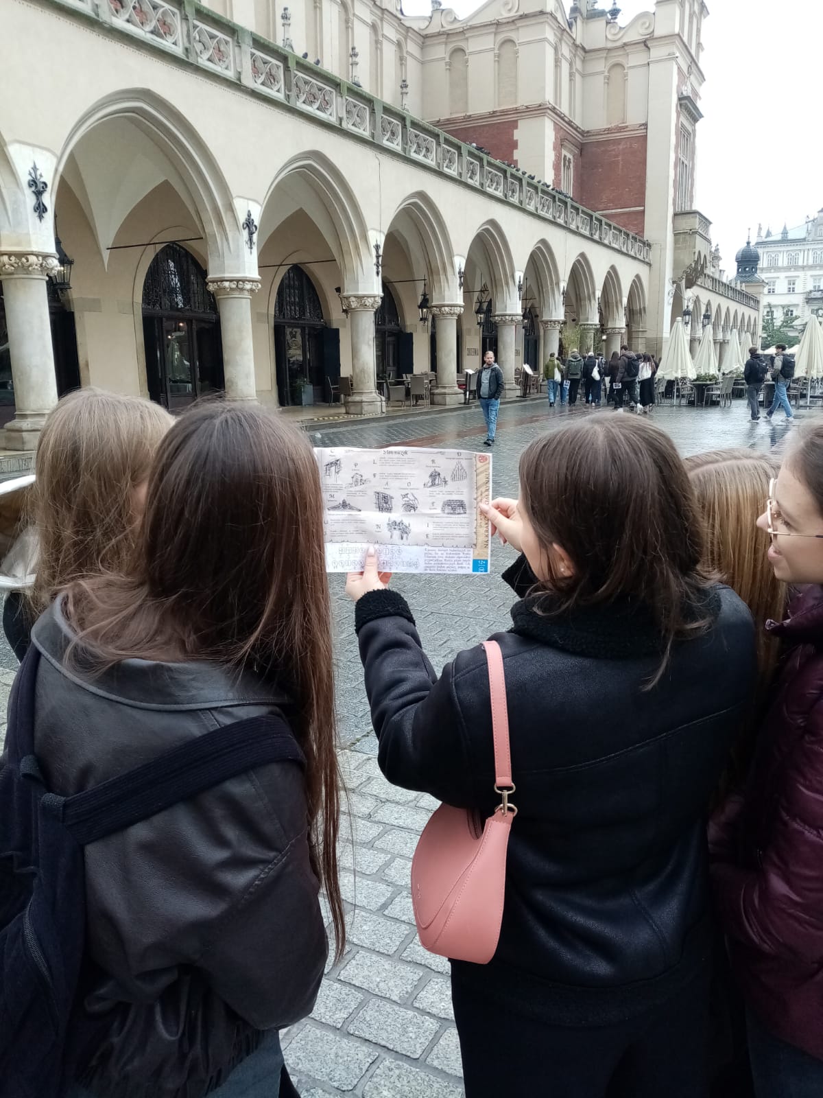 Rozgrzewką przed spektaklem była gra edukacyjna, której celem było poznanie ciekawostek architektonicznych Rynku Głównego w Krakowie.