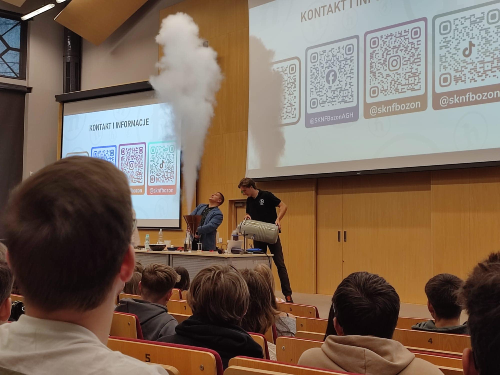 Dnia 18 listopada z okazji Święta Nauk Ścisłych w AGH klasy 2A oraz 3A uczestniczyły w dniach prof. Antoniego Hoborskiego. Święto wzięło swoją nazwę od nazwiska prof. Antoniego Hoborskiego, wybitnego matematyka, który był pierwszym rektorem Akademii Górniczej (później AGH) w latach 1920-1922 i jednocześnie dziekanem pierwszego w AG Wydziału Górniczego. Jego działalność naukowa, dydaktyczna i organizacyjna to wspaniały przykład idei łączenia podstawowych nauk ścisłych z aplikacyjnymi naukami technicznymi. Wydarzenie to odbywa się w listopadzie w Akademii Górniczo-Hutniczej w Krakowie. Celem organizacji jest upowszechnienie i popularyzacja potrzeby rozwoju nauk ścisłych. Aktywnie uczestniczyliśmy w pokazach kosmicznych doświadczeń. Spotkanie to odbywało się w ramach roku zerowego. Demonstracje przygotowane i zaprezentowane przez pracowników uczelni oraz studentów z Wydziału Fizyki i Informatyki Stosowanej AGH obrazowały mniej i bardziej znane prawa rządzące fizyką. Były doświadczenia z ciekłym azotem, pompą próżniową, a także nietypowym wykorzystaniem papieru toaletowego.