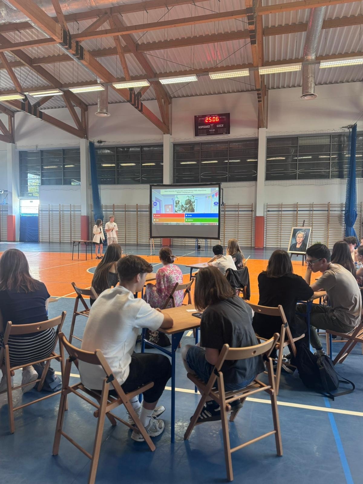 Królową tej części dnia była, jak co roku, patronka naszej szkoły, Maria Skłodowska – Curie. Dwójki uczniów reprezentujących swoje klasy brały udział w konkursie wiedzy na temat noblistki. Konkurs odbył się w formie kahoota. Zaraz po pierwszych pytaniach na prowadzenie wyszła 2d, która już nie oddała palmy pierwszeństwa. Później do konkursu zostali zaproszeni – w ramach niespodzianki – nauczyciele, których zadaniem były również odpowiedzi na pytania dotyczące dokonań naszej Marii Skłodowskiej – Curie, ale w powiązaniu z życiem naszej szkoły. Sprostaliśmy wyzwaniu!