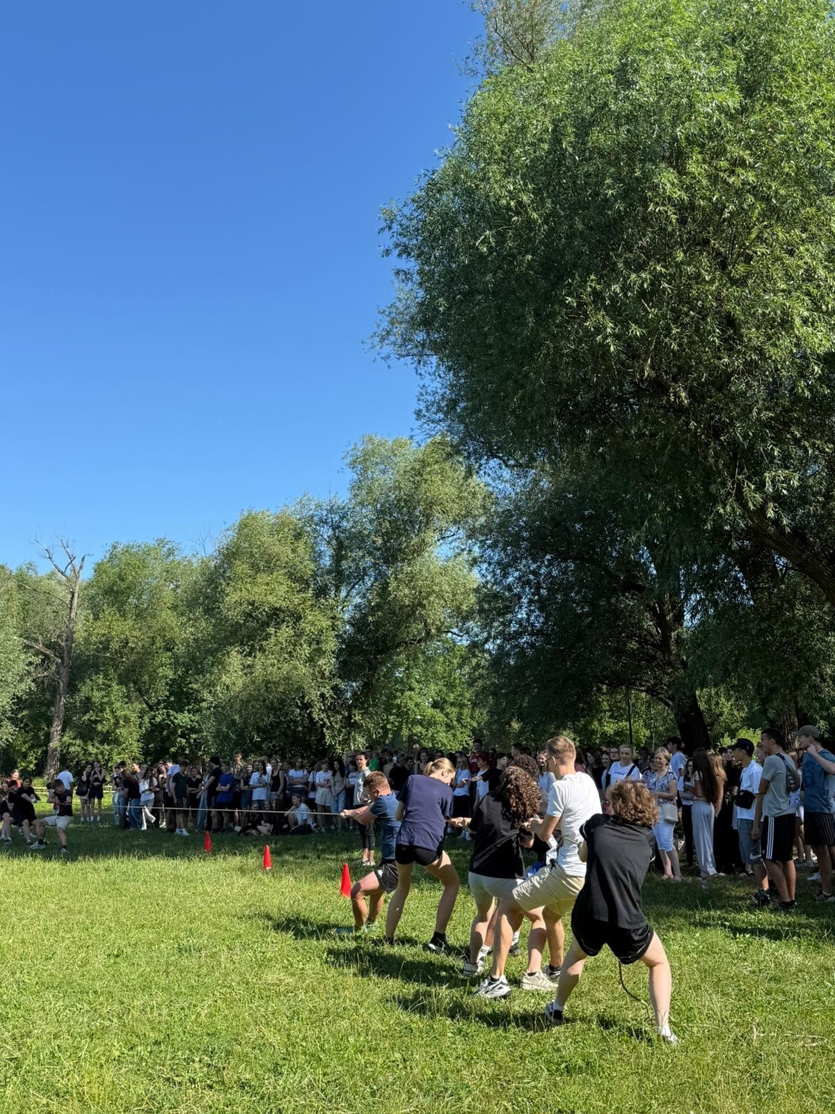 Środę 25.06. rozpoczęliśmy sportowo – o 8.00 w zacienionej okolicy zakola rzeczki Skawińskiego Parku reprezentacje klas 1-3 rywalizowały m.in. w sztafecie, „kapkach” i hula – hop oraz przeciąganiu liny. Wczesna godzina uratowała nas przed upałem. Po zakończeniu sportowych walk przemaszerowaliśmy do szkoły.