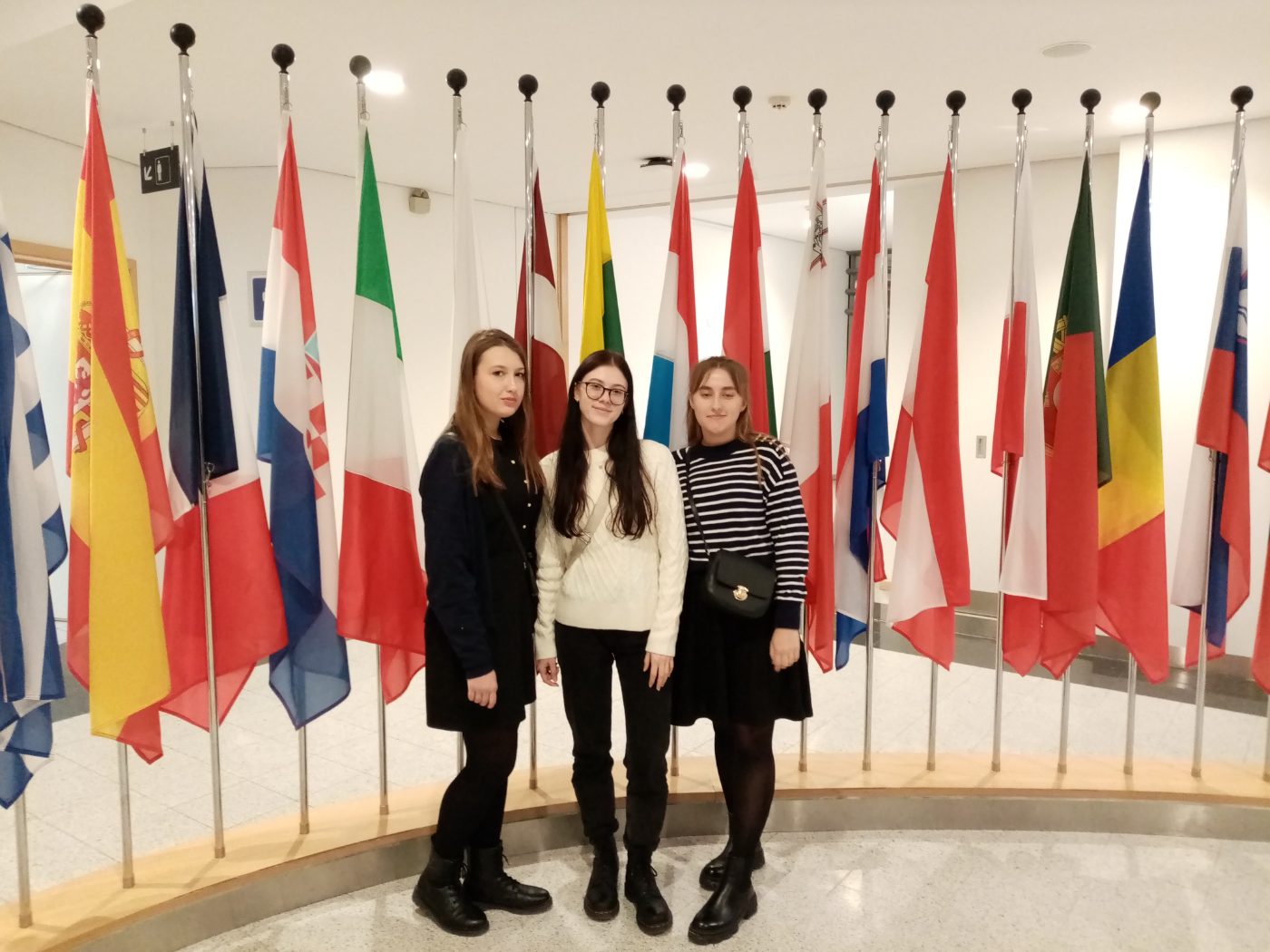 Agnieszka Pociecha, Aleksandra Truszczyńska (4B), Dominika Szatko (3B) czyli drużyna LO Skawina, która zwyciężyła w Powiatowym Turnieju Wiedzy o Europie i UE przybyła do Brukseli na zaproszenie posłanki do Parlamentu Europejskiego Róży Thun.