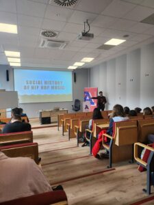 Tematy wykładów to: ‘Video games- interactive identities’ oraz ‘The social history of hip-hop’, a obydwa wygłosił Dr Maciej Smółka.