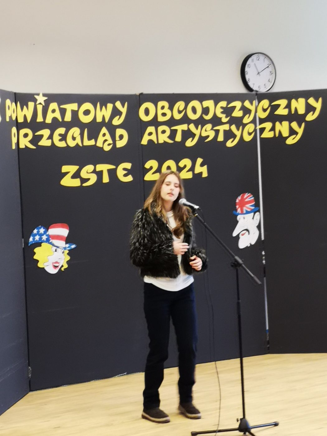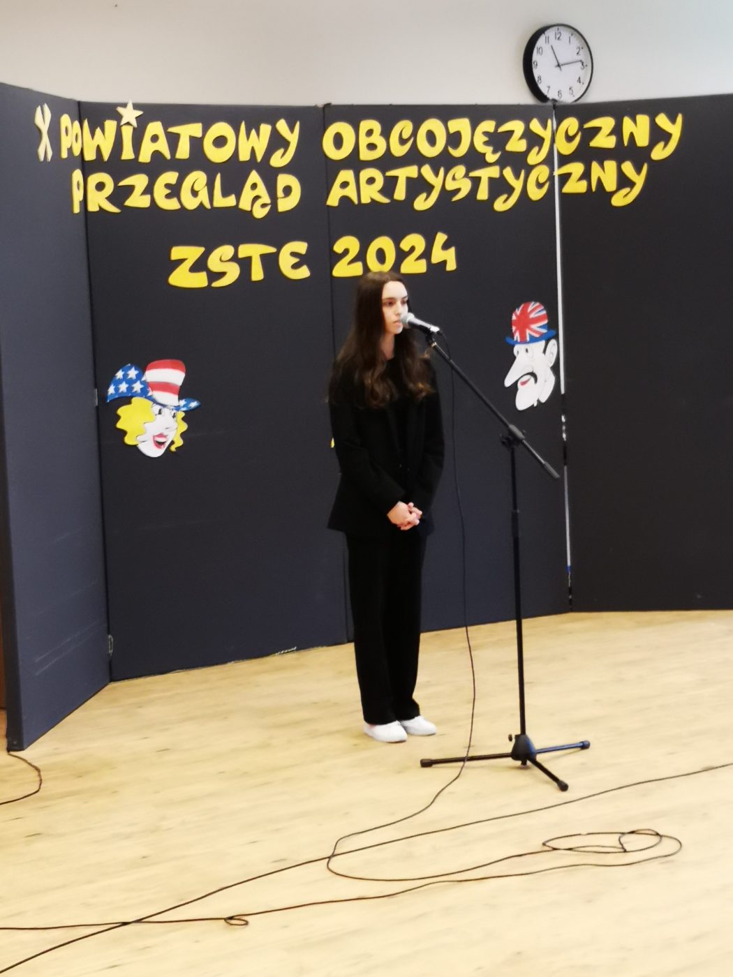 Jak co roku nasza szkoła wzięła udział w Powiatowym Obcojęzycznym Przeglądzie Artystycznym organizowanym przez ZSTE w Skawinie. Uczniowie prezentowali swoje umiejętności wokalne i recytatorskie. Naszą szkołę reprezentowały: